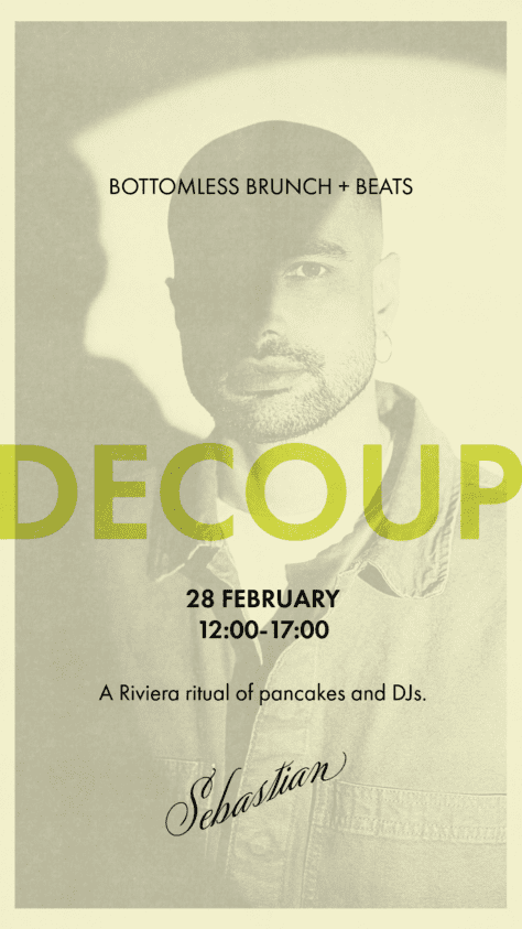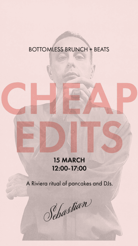 Make Sunday at Sebastian your weekly ritual, with bottomless brunch, golden pancakes, and a soundtrack of Riviera beats. Think Balearic beat, ambient house, and downtempo vibes, all setting the tone for an effortless afternoon. This week’s sounds are provided by CheapEdits Born in Corfu in the 80s, CheapEdits, aka Achilleas is known for his hou