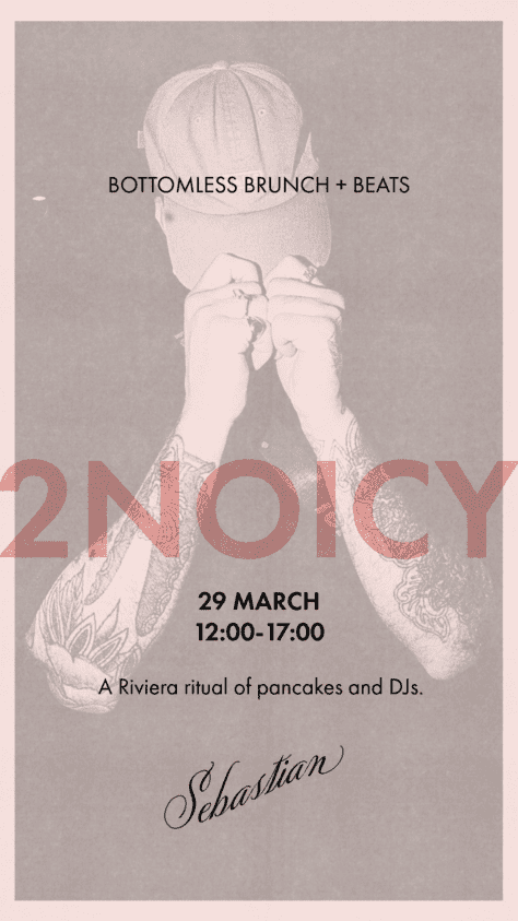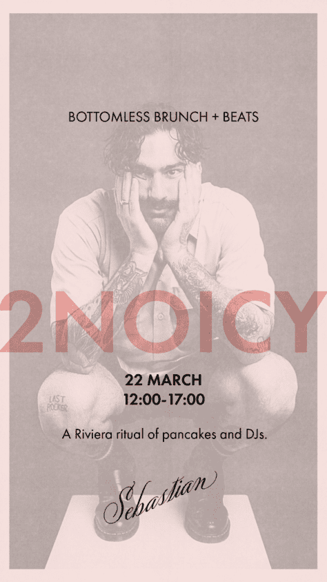 Make Sunday at Sebastian your weekly ritual, with bottomless brunch, golden pancakes, and a soundtrack of Riviera beats. Think Balearic beat, ambient house, and downtempo vibes, all setting the tone for an effortless afternoon. This week’s sounds are provided by 2NOICY 2NOICY (also known as Nawel) is an Argentinian artist based in Athens. As a member o