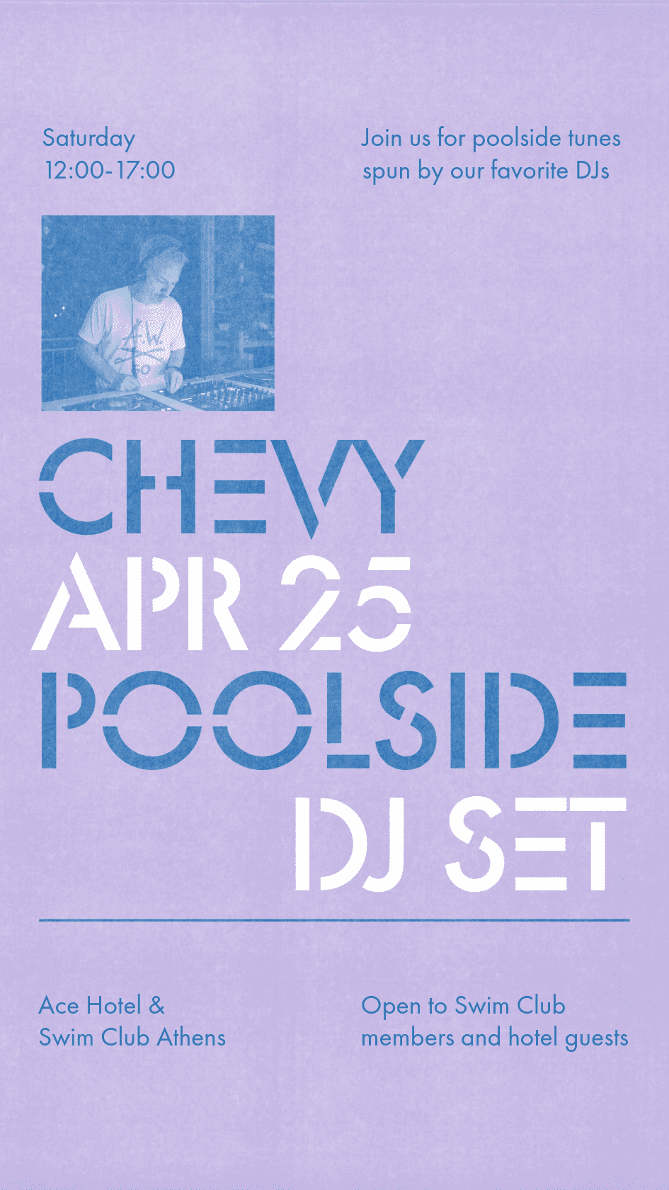 SUNSET SERIES is bringing world-class selectors to the Athenian Riviera. From golden hour into the night, join us at Ace Hotel & Swim Club Athens, April through September, for poolside revelry. This April, we welcome Valeron back to the decks to kick-start the season. Tourist Ath on warm-up duty. For event table reservations, email fb.ath@acehotel.com or call +30 6956 335 215. Tables at Sora Rooftop for the afterparty are available from 23:30 – call +30 6956 335 215 or email…