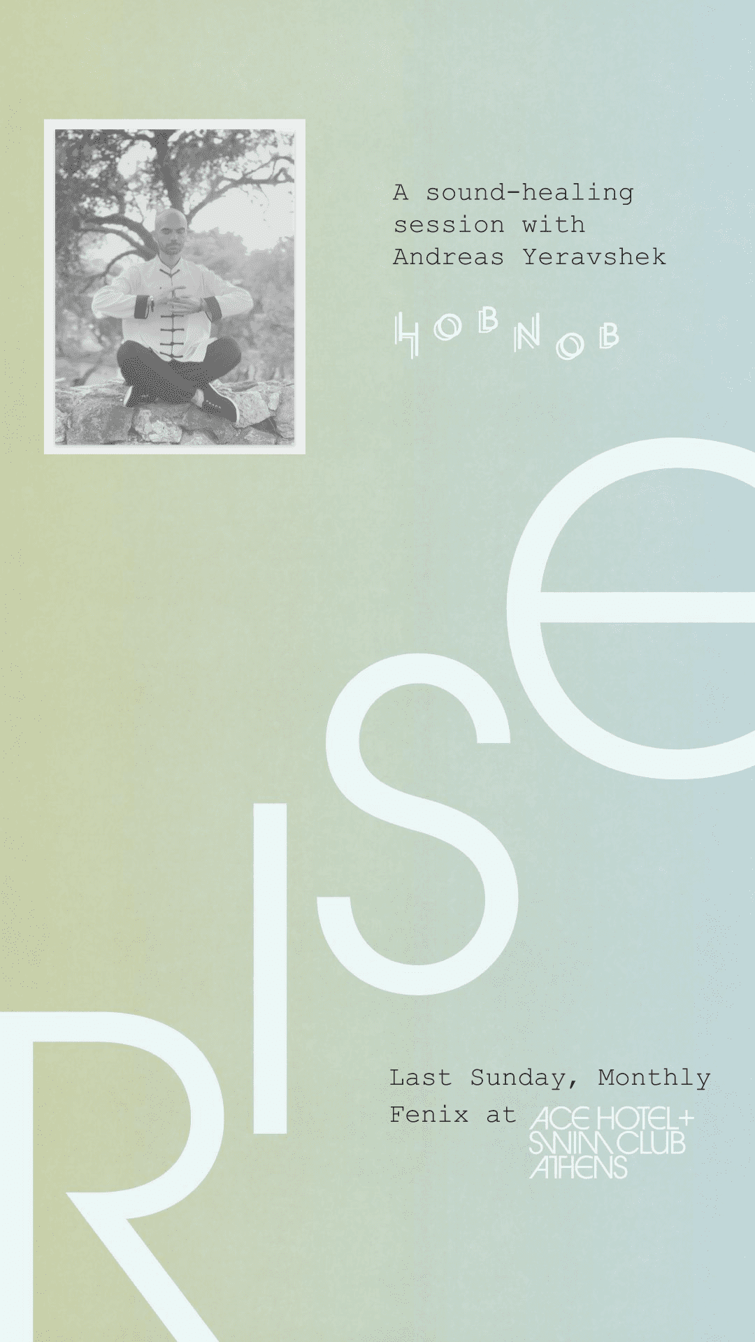 Every last Sunday of the month, we’re turning Fenix into a haven of body, mind, and soul nourishment and mindfulness. Join us in our sun-drenched event space as we team up with Hobnob, Glyfada’s go-to studio for wellness, to bring you a unique experience of relaxation, restoration and awakening. A chance to breathe with intention in a space that celebrates connection, community, and those small moments of magic that shift everything. The sound healing session is led by Andreas Yeravshek.