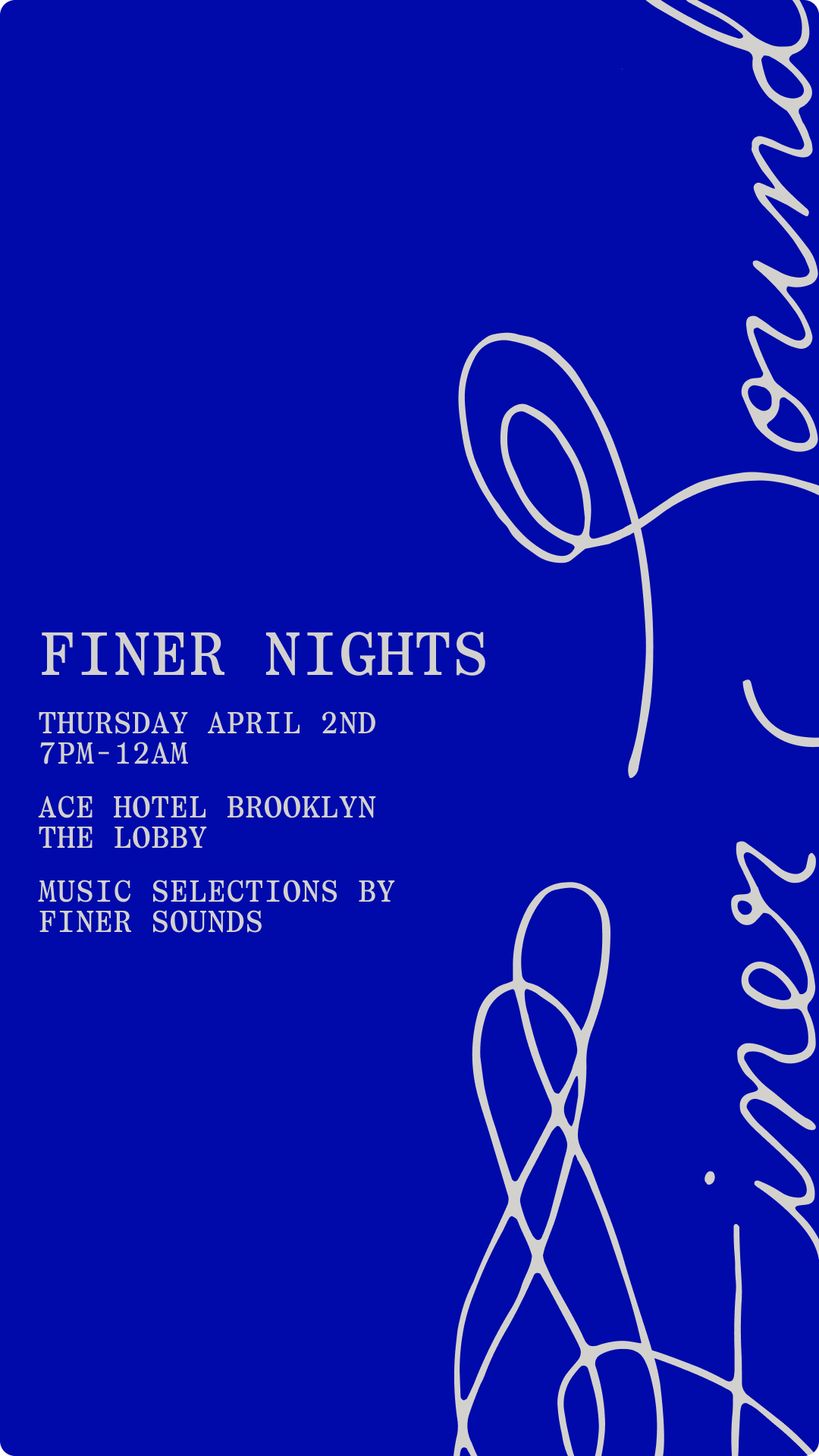 Join us for Finer Nights, with music selections by independent record and audio shop, Finer Sounds as they glide through genres and eras thoughtfully curated to reflect the energy of the shop.