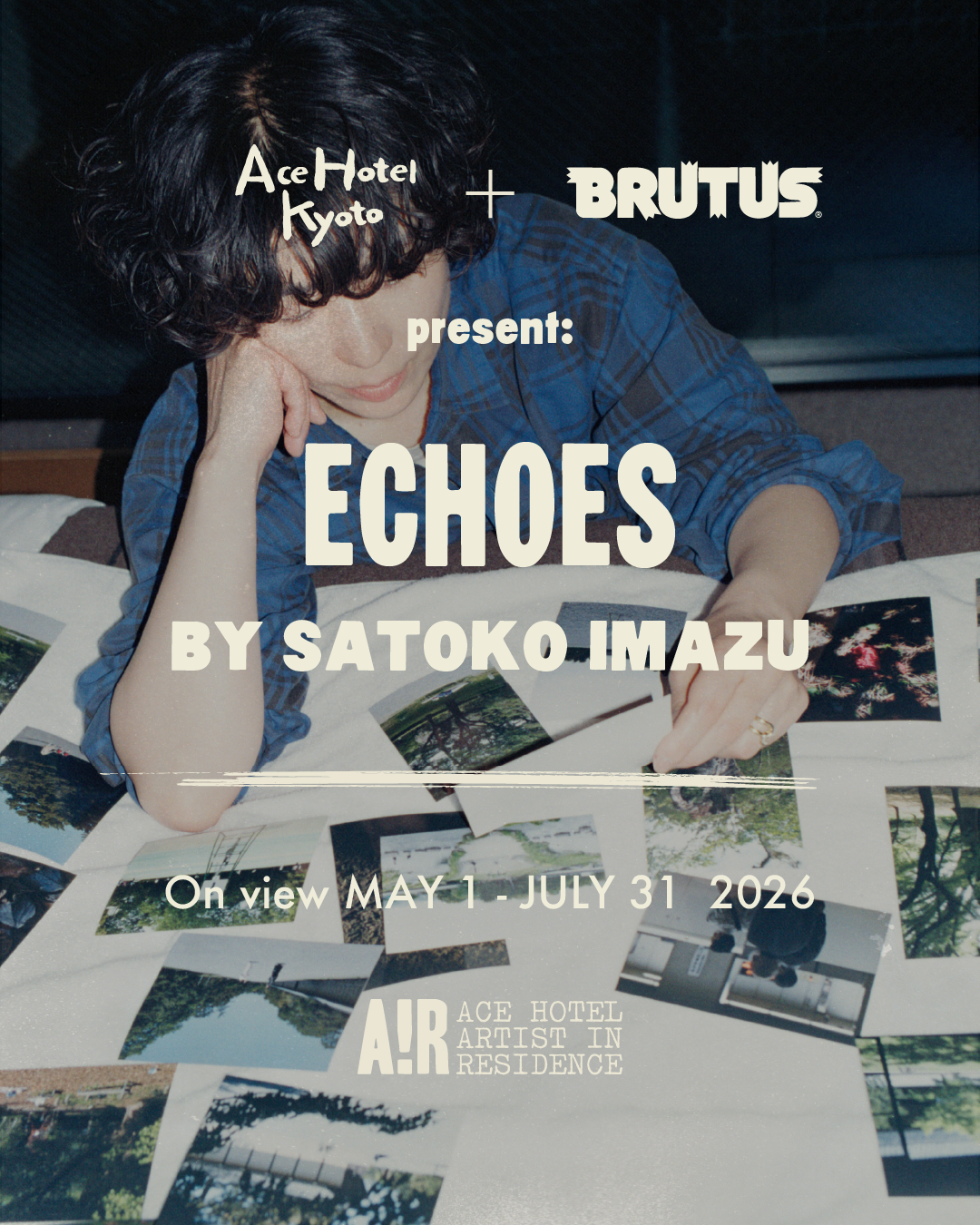 As the first artist in the Artist-in-Residence program (A!R) presented by Ace Hotel Kyoto × BRUTUS, Satoko Imazu will present her exhibition “ECHOES” from May 1 to July 31, 2026 at the 1F Lobby Gallery. A reception party will be held on the same day from 6:30 PM, followed by a photo tour workshop scheduled for Saturday, May 2. Statement:For this residency, I chose the Kyoto Imperial Palace as my subject— a place deeply rooted in history for Kyoto residents,…