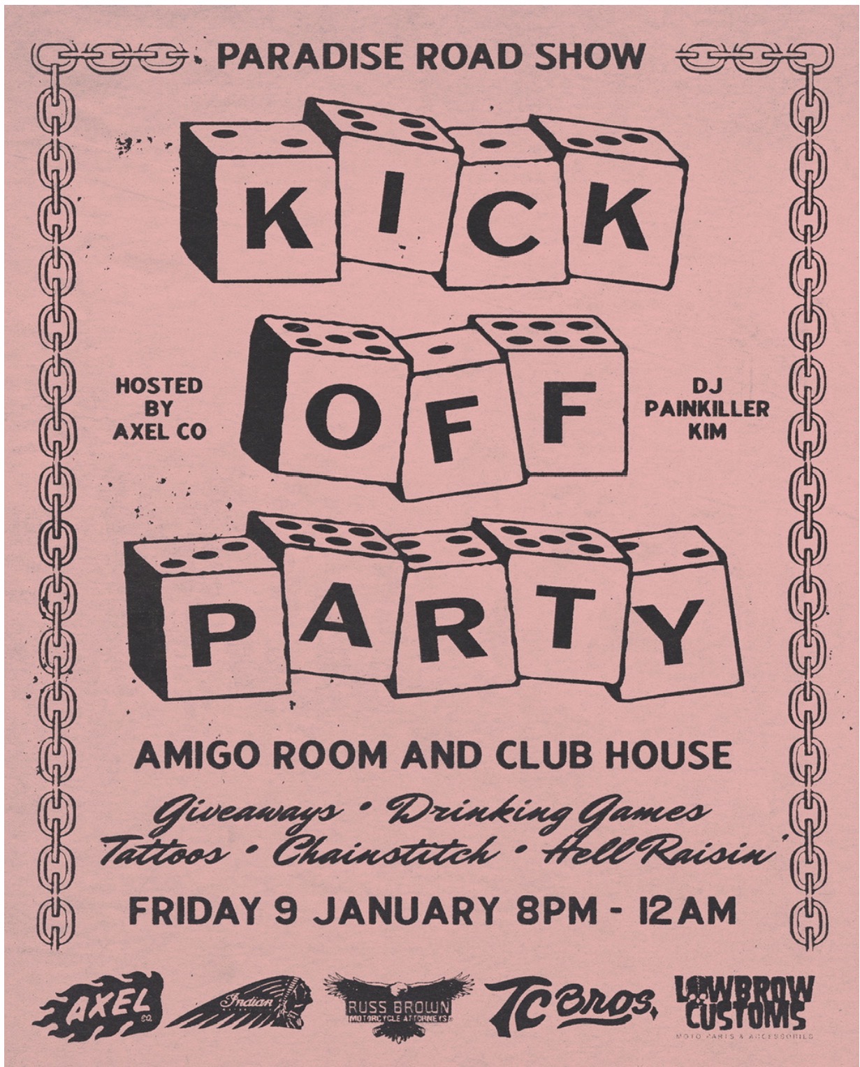 Join us for giveaways, drinking games, chainstitch, tattoos and a wild night !