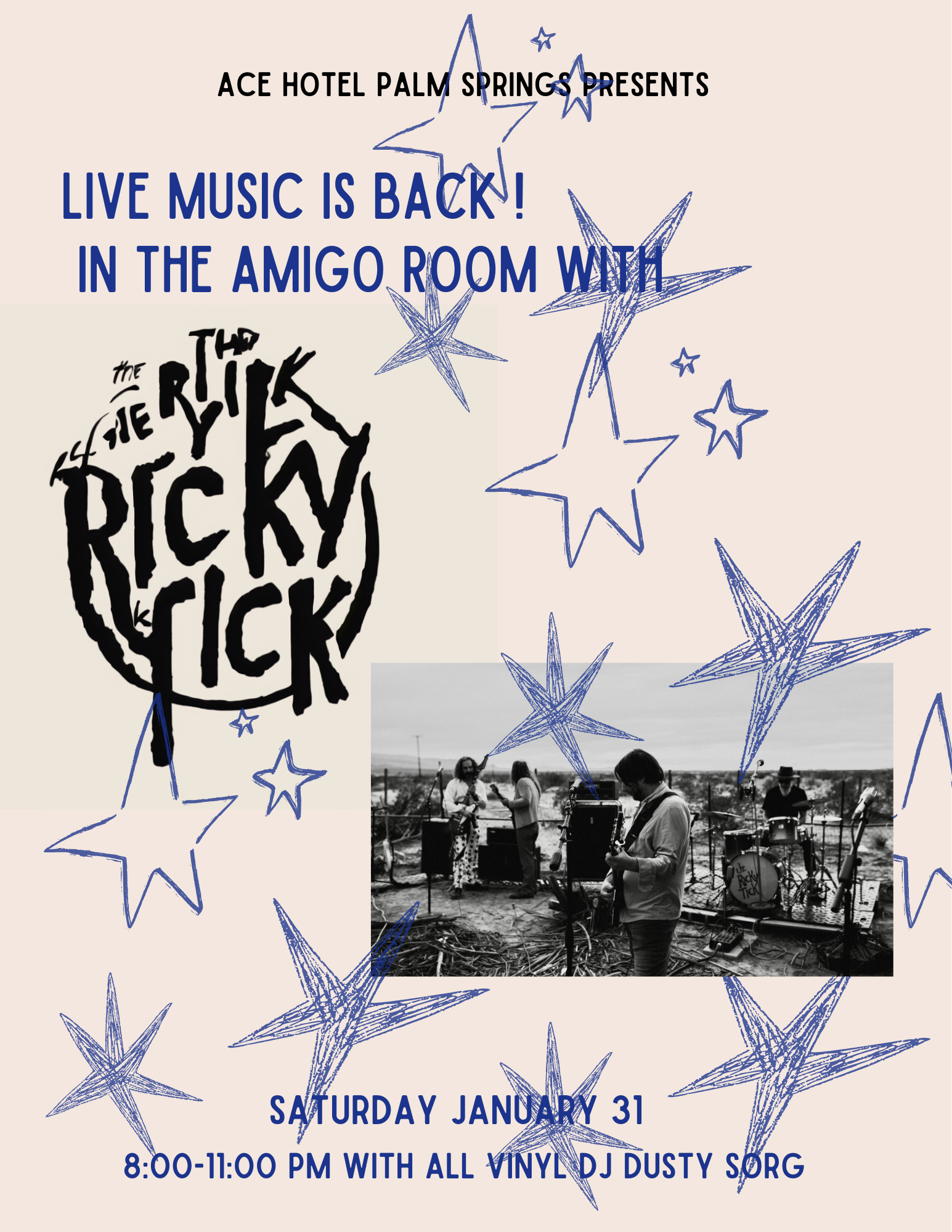 This Saturday 01.31 we feature our first live band The Ricky Tick playing to kick off our Live Music is Back Series !