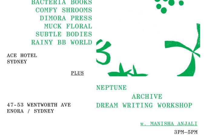 A curated microbial marketplace in the Ace Lobby and laneway cafe, Good Chemistry. Join us for a gathering of artists, independent publishers, sound archivists, designers, and material experimenters whose work operates at the edge of culture and ecology. Featuring Bacteria Books, Dimora Press, Subtle Bodies, Muck Floral, Comfy Shrooms and Rainy BB World. Music by Good Morning Tapes. RSVP above.
