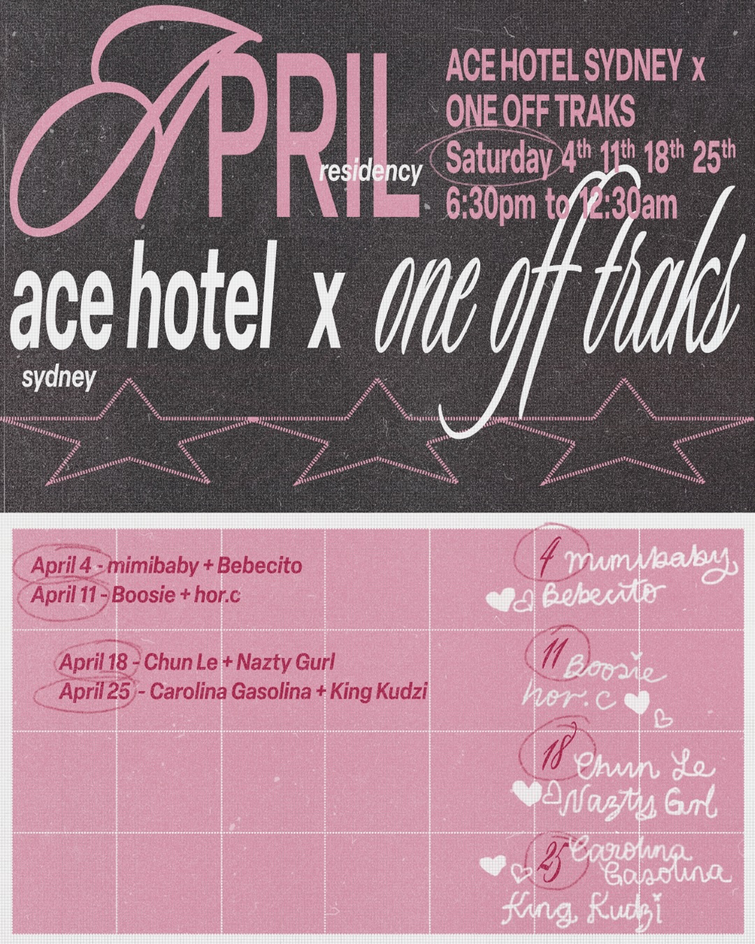 One Off Traks enters the Lobby for a Saturday Residency throughout April. Line up below.