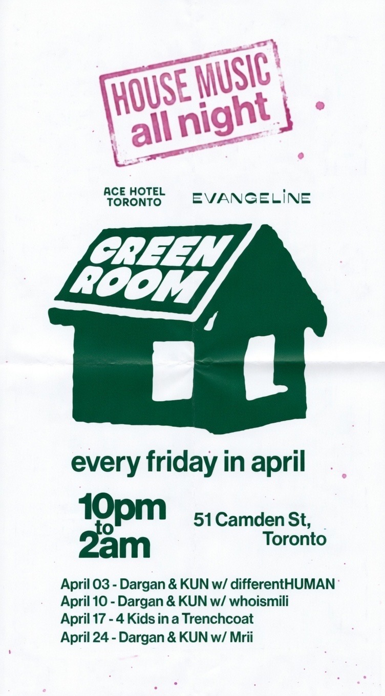Green Room takes over the rooftop every Friday for a special four-week residency at Evangeline, Ace Hotel. Residents Dargan and KUN will be behind the decks each week, joined by a rotating guest DJ bringing fresh energy to every edition. Expect an uplifting blend of house, Afrohouse, and nu-disco, curated for late-night dancefloor moments. Join us on the rooftop for panoramic city views, signature cocktails, and a weekly soundtrack designed to move you.
